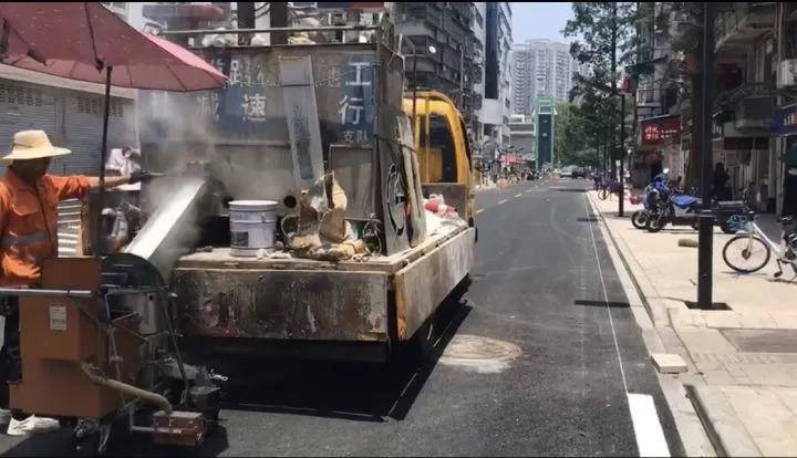 昨天中午,施工人员顶着高温天气,对温州市区府学巷道路进行道路标线施划。