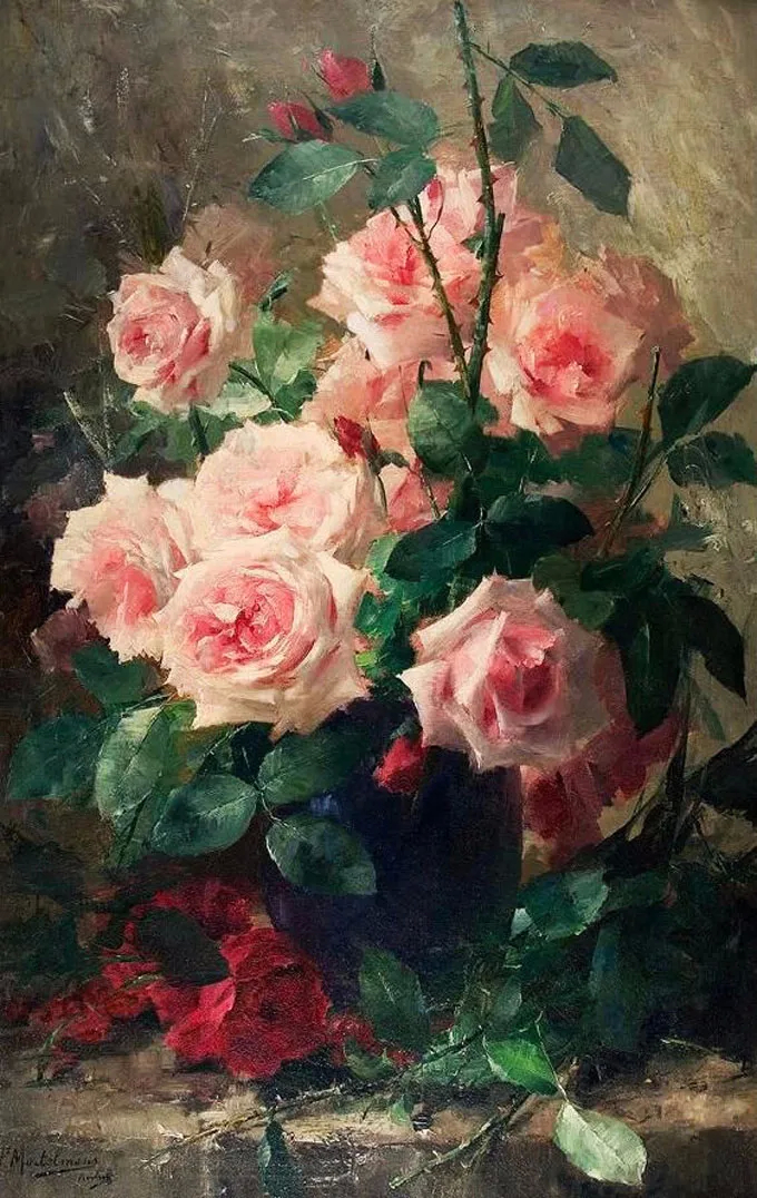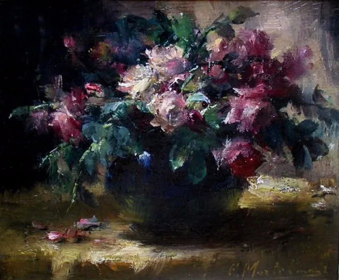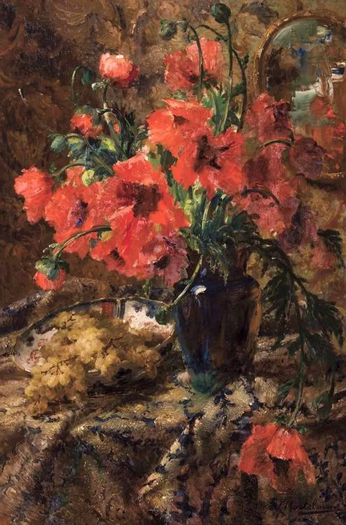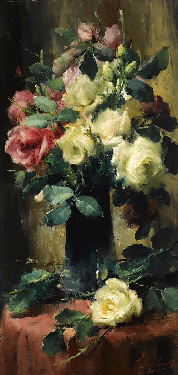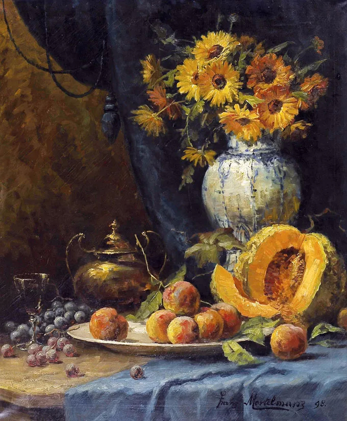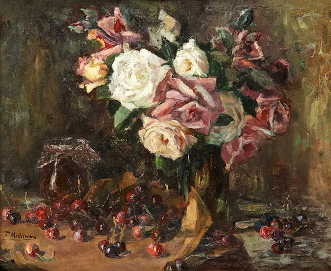 弗兰斯·莫特尔曼(Frans Mortelmans),1865年5月1日-1936年4月11日。比利时画家、绘图员和雕刻师。他最初的绘画主题为肖像画、历史画、海军陆战队和流派场景,但后来专门从事静物画的创作,尤其是花卉作品,取得了相当大的成功。