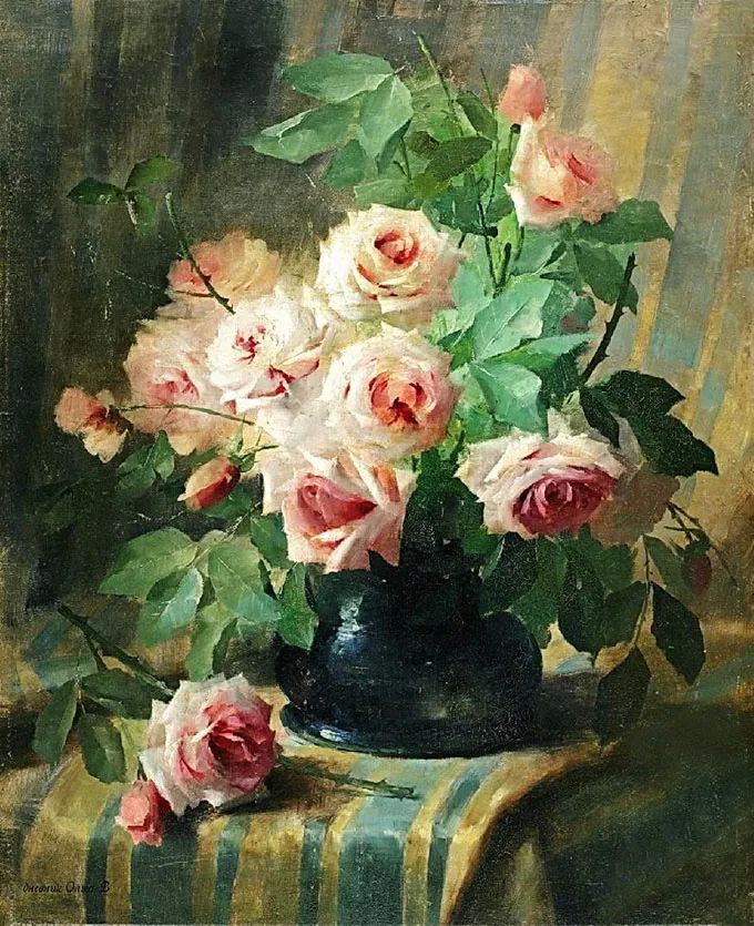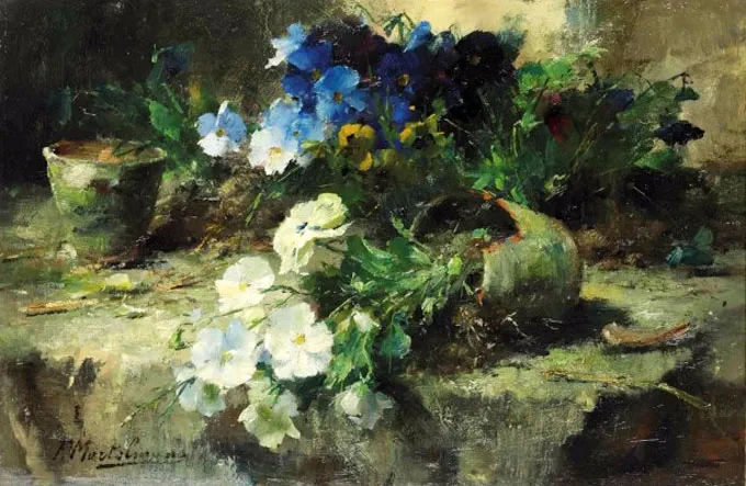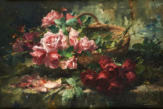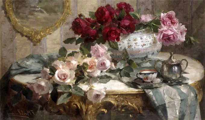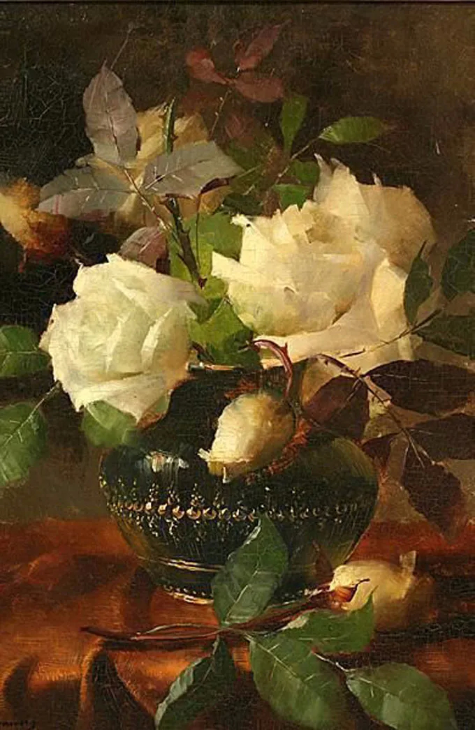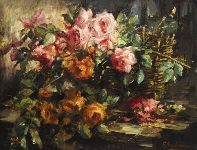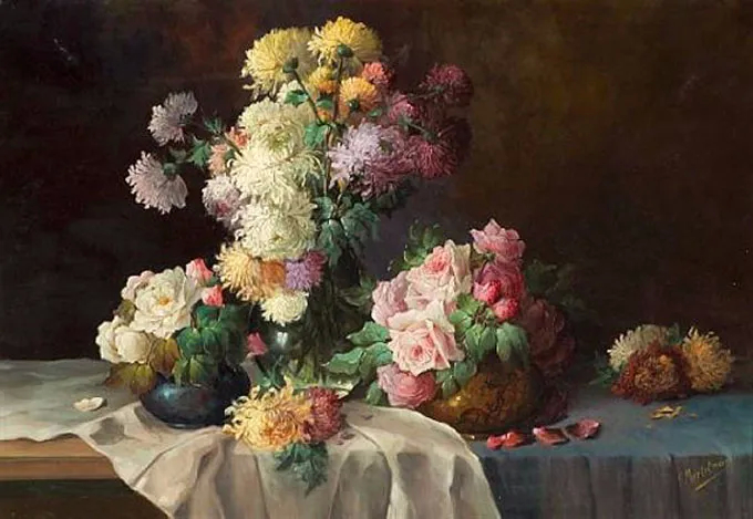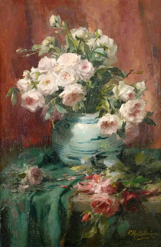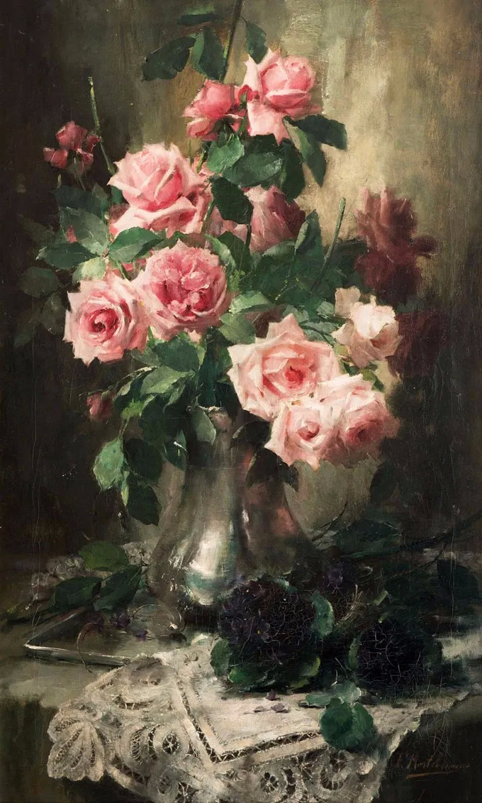 弗兰斯·莫特尔曼(Frans Mortelmans),1865年5月1日-1936年4月11日。比利时画家、绘图员和雕刻师。他最初的绘画主题为肖像画、历史画、海军陆战队和流派场景,但后来专门从事静物画的创作,尤其是花卉作品,取得了相当大的成功。