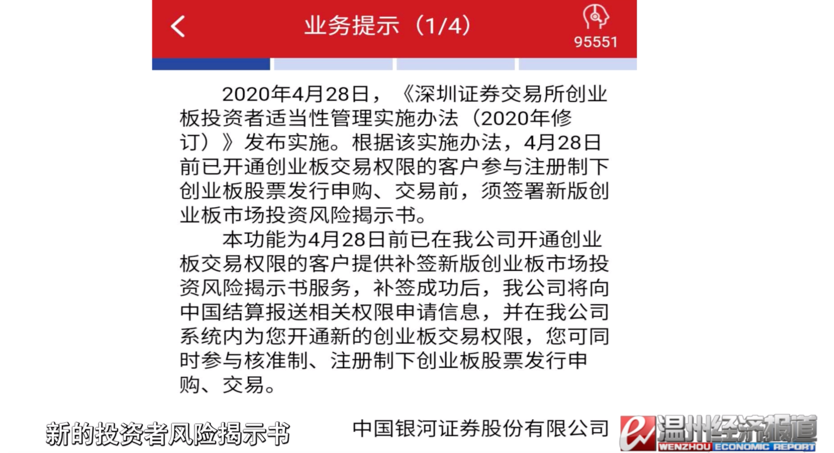 它的风险评测,也就是投资者的风险承受能力,我们券商的评级要在相对积极型或者是积极型以上,如果要参与新的注册制发行的股票新股申购和交易,(已开通权限的投资者)需要补签一个新的投资者风险揭示书,我们作为券商按照监管机构和交易所的要求,我们对于整个交易软件进行了及时更新,投资者可以通过手机APP,可以通过我们的掌上营业厅,还可以通过我们电脑端的交易软件进行业务办理。