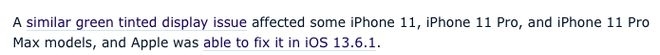 文中提到,类似的绿屏现象也曾出现在部分iPhone 11、iPhone 11 Pro和iPhone 11 Pro Max机型上,苹果此前在iOS 13.6.1中修复了该问题。