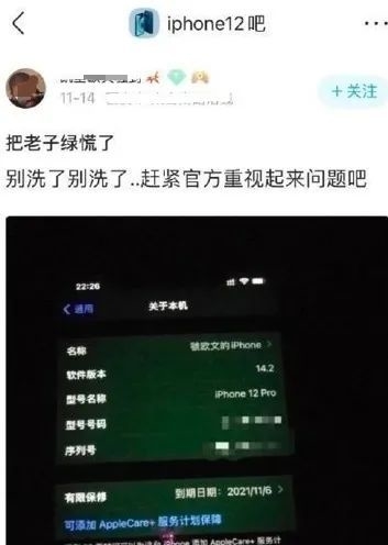 昨日(11月19日),在外媒 MacRumors 获得的一份内部文件中,苹果已经承认了一个问题,一些 iPhone 12显示屏在某些条件下表现出闪烁、绿色或灰色的光芒,或其它非预期的颜色变化。且在本周与苹果授权服务提供商分享的文件中,苹果表示,已知道与此问题相关的用户报告,并正在进行调查。