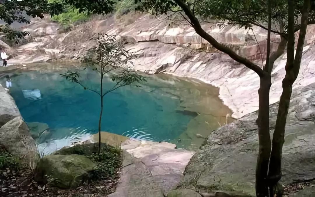 龙潭四周巨石光洁如磨,潭中水质清澈见底,游鱼条条可数,站在岸边观赏,让你留连忘返。