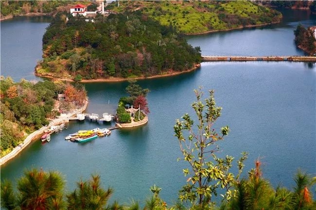 50多年前,这里还是峰峦耸立,桐溪水库建成后水位升高,大部份山体便沉入水底,只有顶部露出了湖面,形成了如今一座座美丽的湖中之岛。