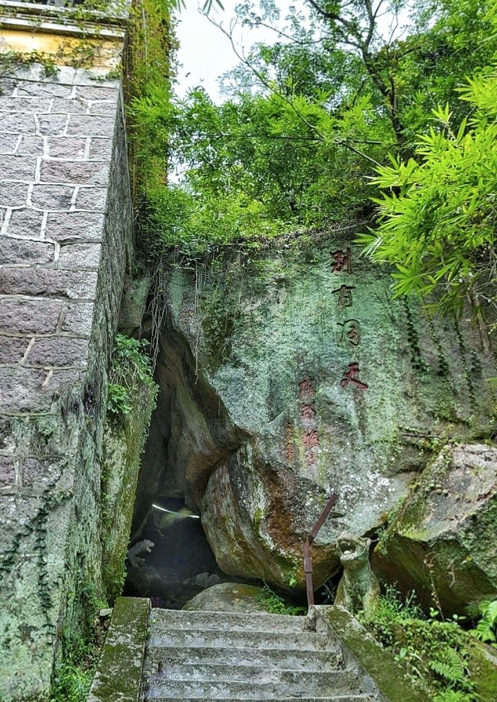 景区内有一始建于宋朝的寺院叫岩庵,凌空飞架于岩石之上,岩庵下方有多个大小不一的花岗岩天然洞穴,洞与洞之间彼此相联,洞洞相通,深浅有致,宽窄相宜,进入洞中,恍如隔世,故名“别有洞天”。