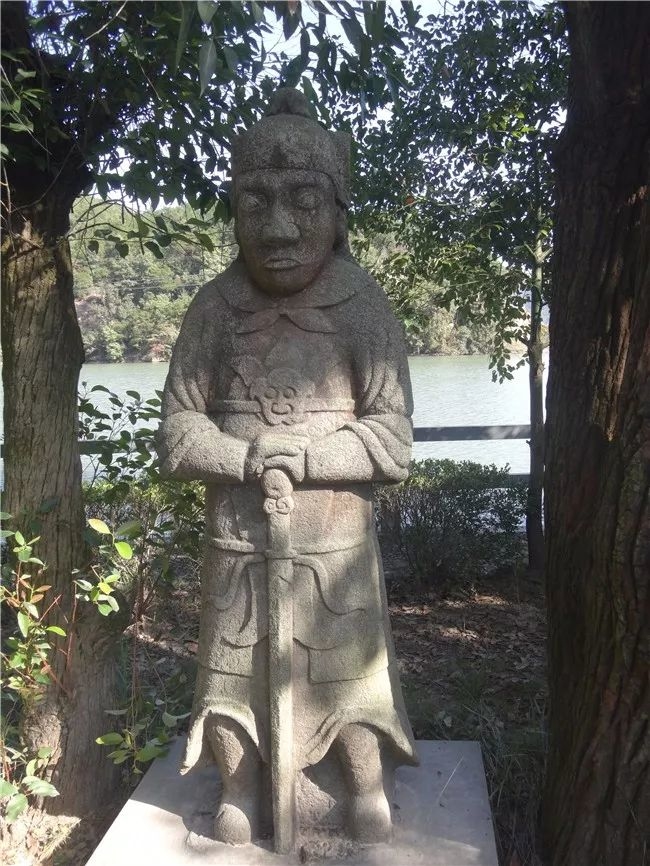湖心岛上幽思亭中,可览湖光山色。在亭子的前方,排列着石将军、石马、石虎、石羊共五对石雕像,这是清初顺治年间,当地的石匠为悼念明朝遗臣李维樾而雕刻的。