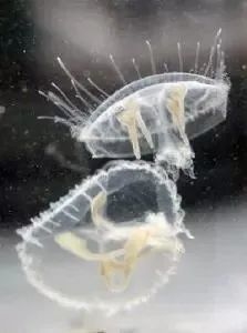 在桐溪景区的水域中,还生活着有“水中大熊猫”之称的桃花水母,是世界级濒危动物,国家一级保护动物。桃花水母最早出现于5.5亿年前,比恐龙还早3亿年,所以称之为“生物活化石”。