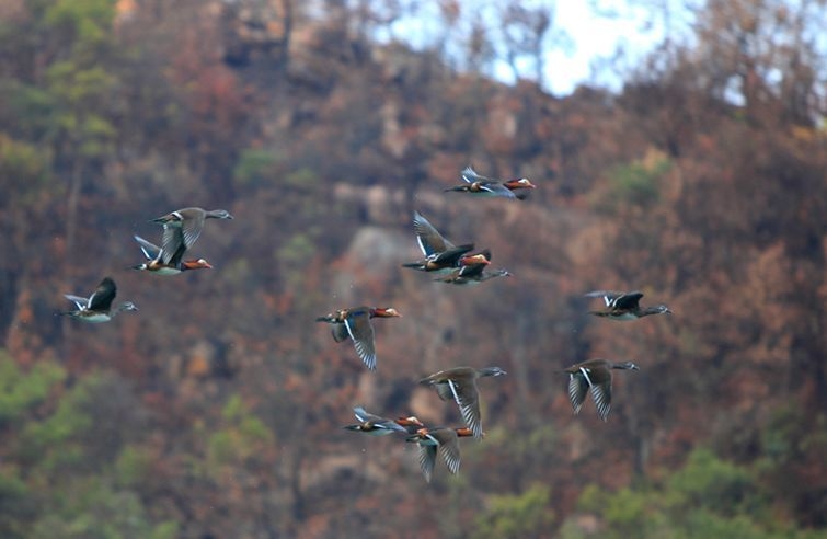 在桐溪最常见的就是人们眼中的爱情之鸟—鸳鸯。每年11月份至次年2、3月份,大批鸳鸯就会从北方迁徙至桐溪景区栖息越冬。