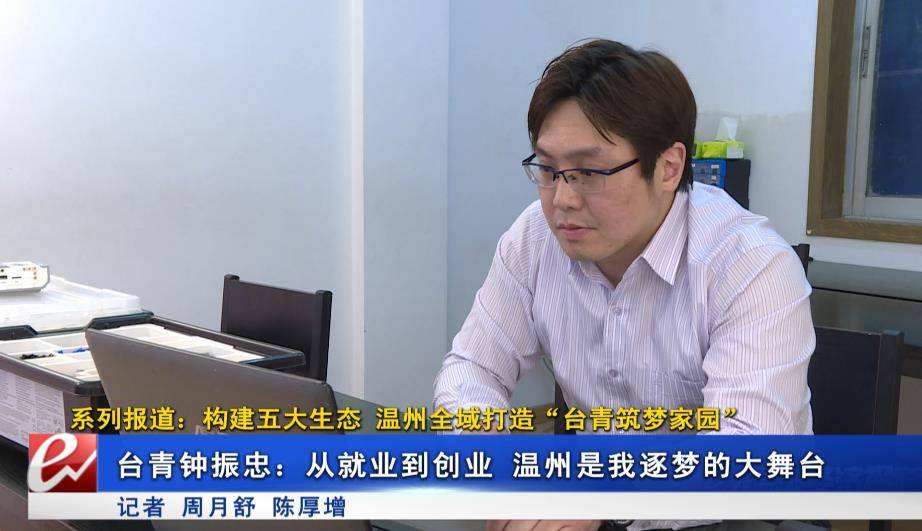 近年来,随着海峡两岸(温州)民营经济创新发展示范区建设和温州全域打造“台青筑梦家园”的不断推进,越来越多像钟振忠一样的台湾青年选择来到温州这座创业就业的热土,他们在温州找到了挥洒才能、安居乐业的舞台,用智慧和勇气闯出了一片天地。台青在温州的故事还有很多、还在继续,也将越来越精彩。