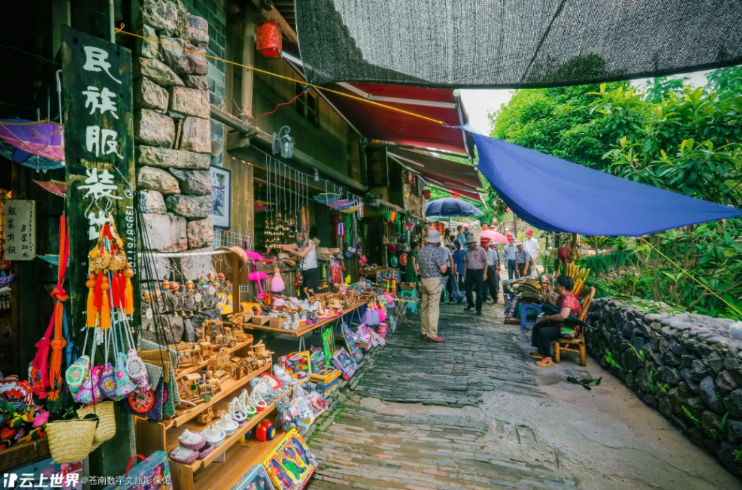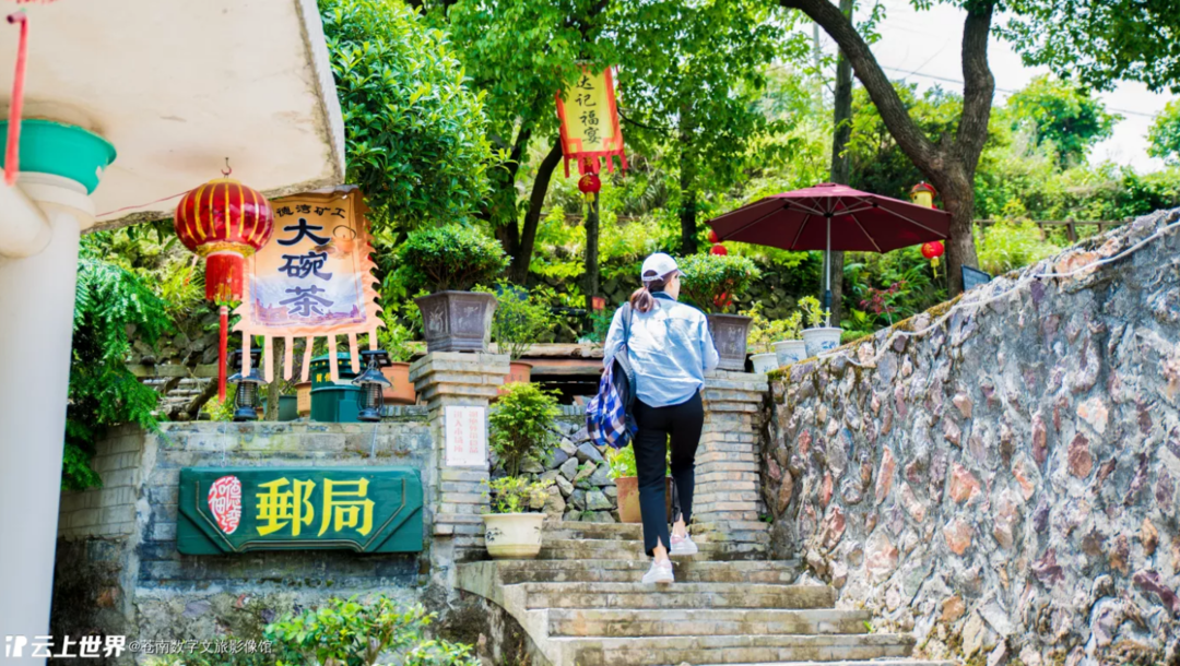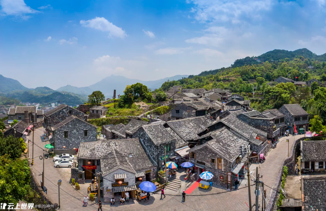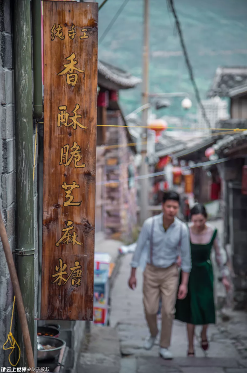 在狭窄的山路不断盘旋向上,路转山角,因山势高低而建在不同海拔高度的民居跃入眼帘,与群山相接,又似住在云中,这就是令人魂牵梦萦的福德湾古村。