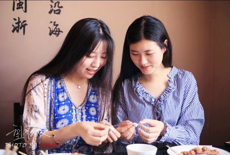在矾山,你还可以体验一把自己包肉燕,备好由鲜猪前腿肉调制而成的可口馅料,将燕皮的一端轻轻卷起,把馅卷入其中,再将燕皮左右两边往中间连牢。经过你的巧手,形似飞燕的肉燕制作完成。