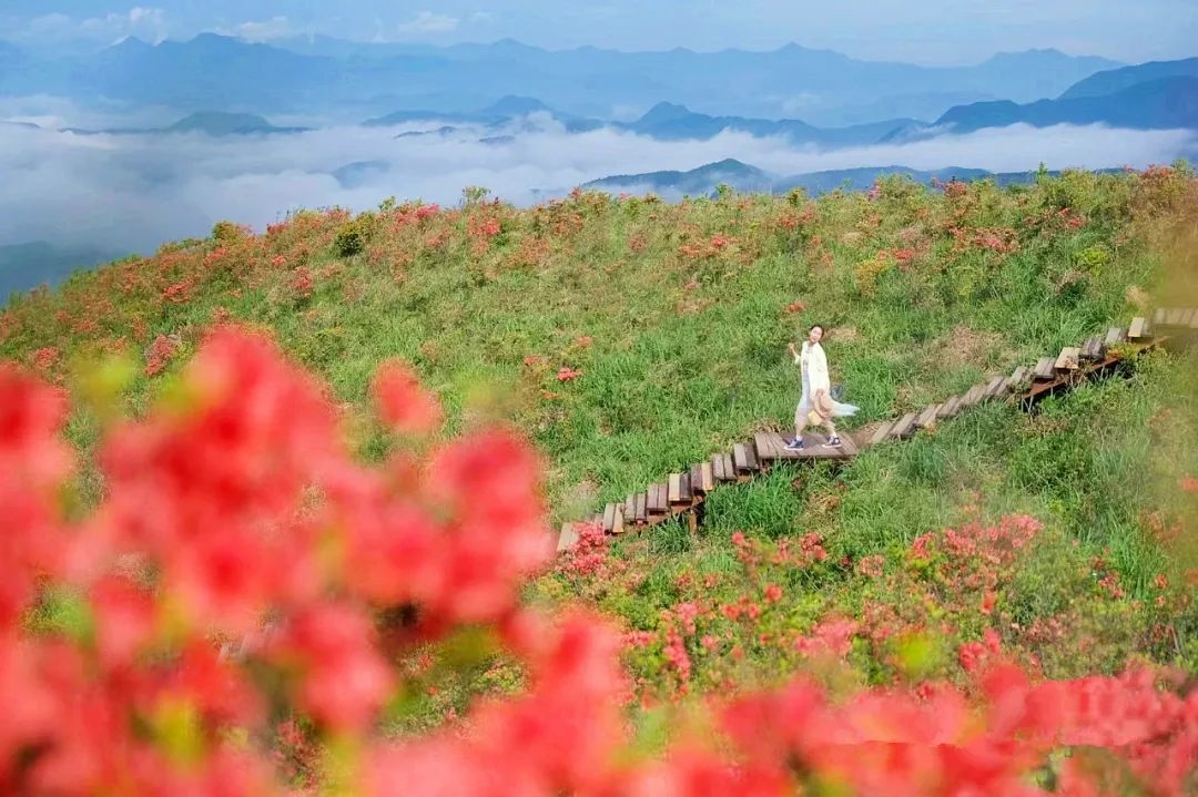 来到智仁,竹无处不在。山野、陡坡、溪涧,漫山翠影,人称“乐清小安吉”。当然,这里除了竹海,也有着乐清海拔最高的杜鹃花海。位于太湖山巅,高山草甸之上,一片茂盛的杜鹃格外娇艳动人。踏在三界之地,脚下是花海,远方是壮怀,胸中颇有凌绝顶的慨然。