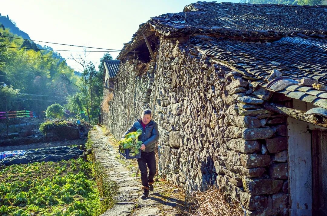 这里的民居建筑有十多幢是明清时期的古建筑,石砌小路连接着石台阶在民居间折上或折下,形成了一条一条的夹道小巷,原木和山石都保持着天然的本色,显得格外原始自然。