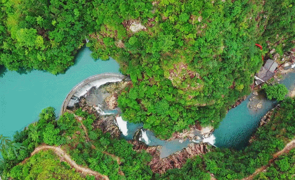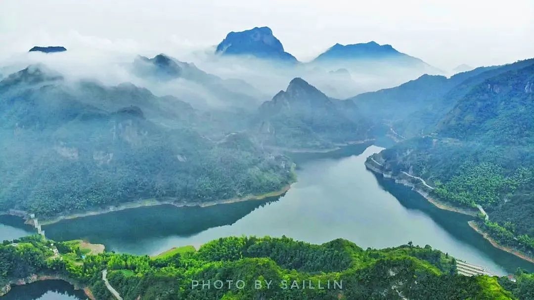 从北阁村再往前行,一座福溪水库大坝如入了世外桃源,宛若明镜的龙湖水映照着两岸青山,一座座山峰自朦胧水汽中浮现青黛色的面容,自带一份避世的山野闲趣。